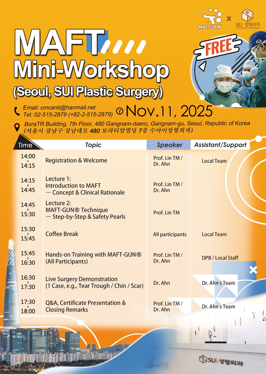 2025년 11월 11일에 수아이성형외과에서 #마프건(지방이식 미세 주사 기구) 사용에 관한 워크샵이 있었습니다. On November 11, 2025, SUI Plastic Surgery Clinic held a workshop on the use of the MAFT-gun (a fat grafting microinjection device).