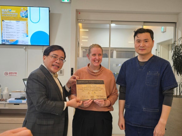 마프건 개발자인 대만의 Tsai-Ming Lin선생님이 오셔서 강의를 해 주셨고, 안태주 원장님이 라이브 수술 시연을 통해 사용법을 알려 주었습니다. MAFT-gun developer Dr. Tsai-Ming Lin from Taiwan gave a lecture, and Director Tae-joo Ahn demonstrated the device’s use through a live surgical demonstration.